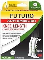 Help yourself recuperate properly so you can get back out there. Futuro anti-embolism stockings provide the medically proven benefits of graduated compression to offer effective support as well as soft durable materials for outstanding comfort and fit. Our graduated compression stocking knitting technology is specifically designed to speed blood flow by providing the most compression at the ankle and gradually diminishing pressure up the calf. Moderate graduated compression which accelerates blood flow up the leg helping to reduce the dangerous formation of blood clots following surgery. Knee length. Specifically designed for the recuperating patient.